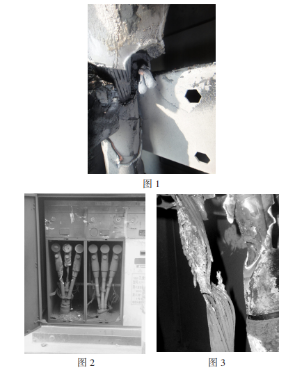 2009年2月15日,回南天,仙村站孔堂線在經歷了長達18分鐘的間歇性接地后速斷跳閘,重合不成功,K5013-0003X電纜分支箱601開關B相進線電纜終端應力錐處首先短路燒毀(如圖2)。據分支箱附近商鋪店主反映,箱內曾繼續宣布嘩啪的響聲并冒煙,終究傳出爆炸聲音。經開始剖析,事端原發點為B相應力錐尾部,因為密封不嚴,硅脂固化,在運轉環境濕度較大的情況下呈現凝露,水氣進入纜芯,導致絕緣強度破壞產生爬電。終究由間歇性接地發展到三相短路(如圖3)。此次故障相同導致分支箱氣室破損泄漏,分支箱報廢。