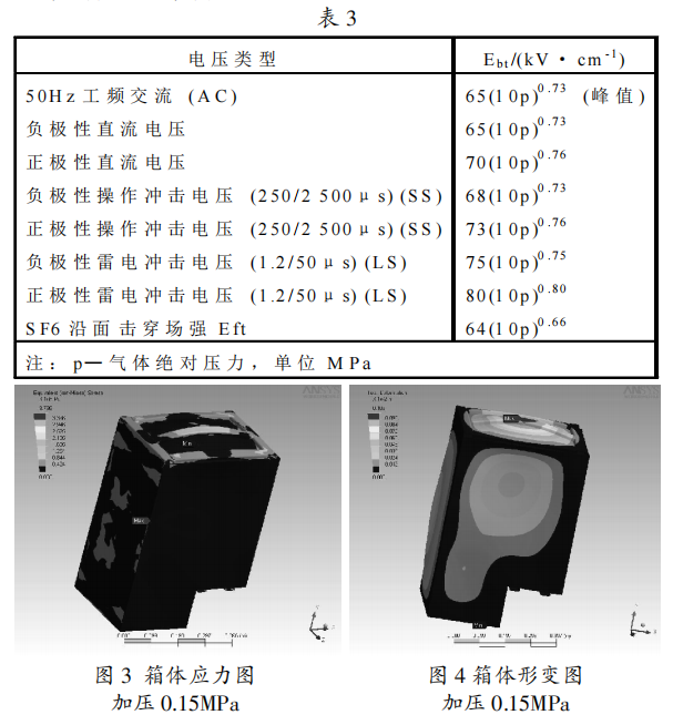 環網柜殼體形狀不同有箱式和筒式之分。由于箱式結構有利于實現進出線.配電方案的實施,但是箱式在承受壓力的局限性,使箱體不能夠承受太高的壓力。下面介紹一種環網柜氣箱的設計方法。與氣箱設計有關的環網柜額定參數見表1。