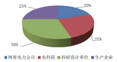 本著為電力行業展開效勞的繩尺,本次查詢網省電力公司占比20%,電科院占比25%,科研規劃單位占比30%,消費企業占比25%。如圖所示。
