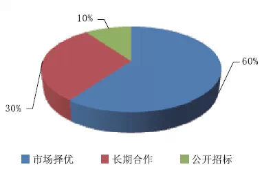 通過調研,所查詢參加者單位對固體絕緣環網柜產品通過市場擇優的占比60%;長期協作的占比30%;聯盟無;公開招標的占比10%。詳細如下圖3所示。