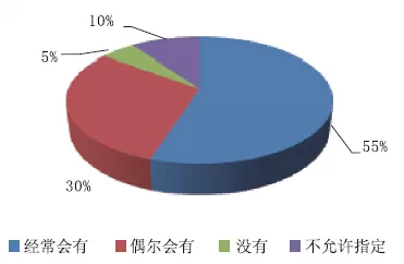 在參加者所接觸的項目中,針對是否常常有指定廠家或品牌的問題,以為常常會有的占比55%;偶然會有的占比30%;沒有的占比5%;不允許指定的占比10%。如圖4所示。