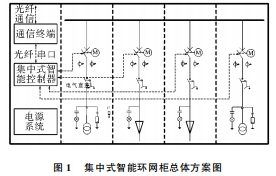 1集中式智能環網柜總體方案智能環網柜是使用現代的電力電子、自動化控制、傳感測量等技術將10kV負荷開關柜、斷路器柜、熔斷器柜、互感器與保護設備、通訊設備、計量外表等模塊組合在一同,完結電網一次設備與二次設備的出色結合。集中式智能環網柜整體結構如圖1所示。