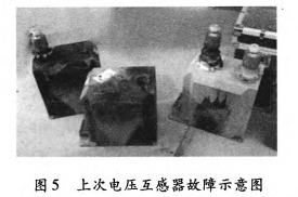 20113300:38,35kV垣潔線、35kV垣宏回A、B相電壓互感器擊穿,如圖5所示;201232619:7:58,35kV垣潔線56號線路電壓互感器A、BC相損壞,AB相有炸裂現象。